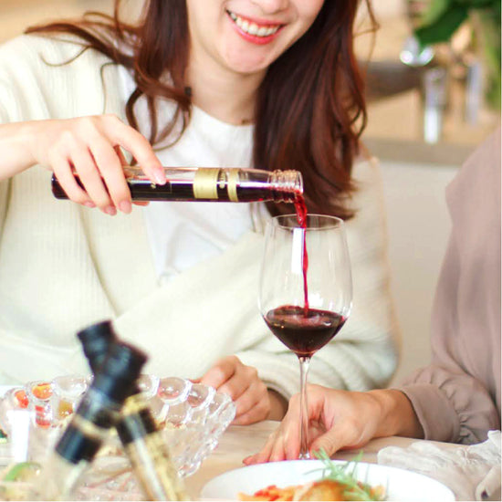 100mlの美しいガラス瓶に詰められたグラス一杯分のワインは、特許を取得した技術で生産者から直接仕入れたワインをボトリングしております。時間の経過によった味わいを損ねることなく、通常のワインボトルと同じようにお楽しみいただけます。