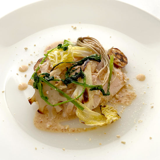 渡邊シェフによる旬の食材を使って仕立てた二人分の前菜・メイン・デザートからなるショートコース料理と、ひと皿ひと皿の料理と最高の相性を奏でるワインをMAIAM WINES が厳選しました。
