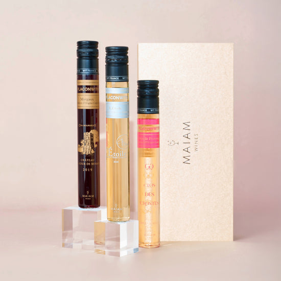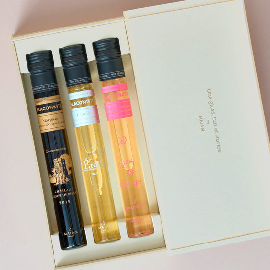 「エクラ」とは、フランス語で“輝き”。 ジュラの白、プロヴァンスのロゼ、そしてボルドー・マルゴーの赤──フランスを代表する3つの土地の個性を一度に楽しめる特別なセットです。 大切な人への贈り物として、確かな存在感と上質さを備えたギフトです。